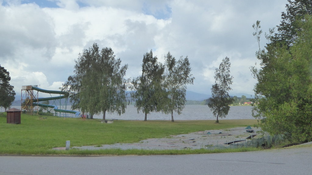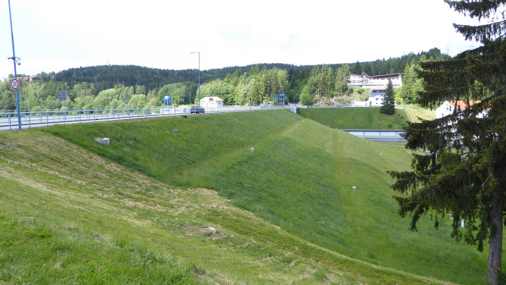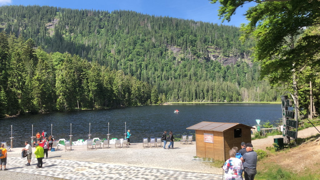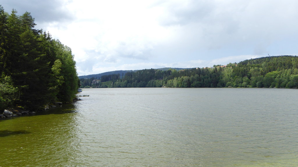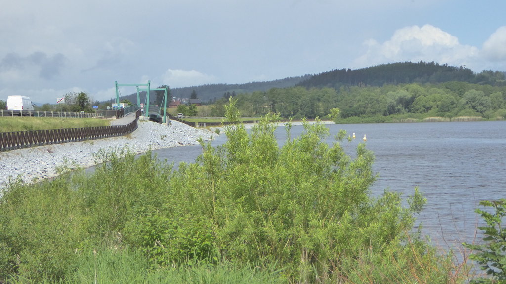 Heute war Tschechien das Hauptziel. Richtung Osten erreichten wir bei einer Pause bei Philippsreut den "Scheidemeter". Hier fließt auf der einen Seite das Wasser in Richtung Donau und Schwarzem Meer, auf der anderen Seite in Richtung Moldau und Nordsee. Ab Volary ging es Richtung Süden und am Moldaustausee entlang. Einen Teil davon überquerten wir bei Cerná v Posumavi. Dort legten wir die nächste Pause ein.
