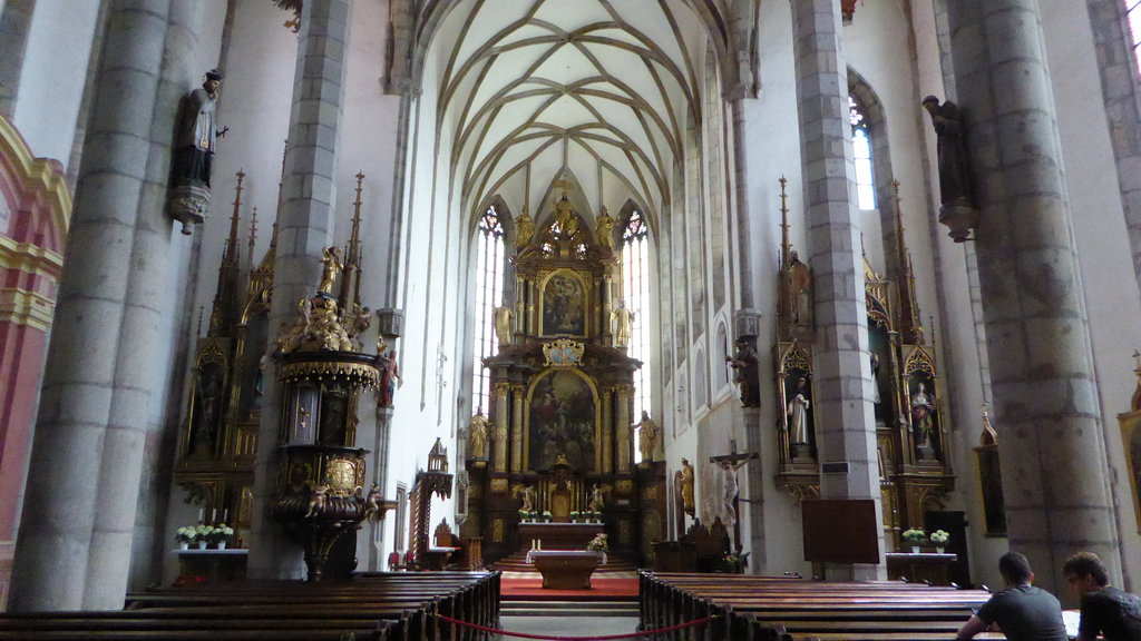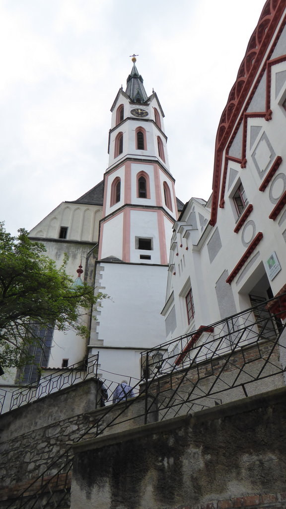 Vom Parkplatz waren es nur ca. 200 m zum Rand der Altstadt. Diese durchstreiften wir. Egon und ich gingen hoch bis zur Kirche "St. Veit". Von dort aus einen wunderbarer Blick auf die Moldau und die Schlossanlage.