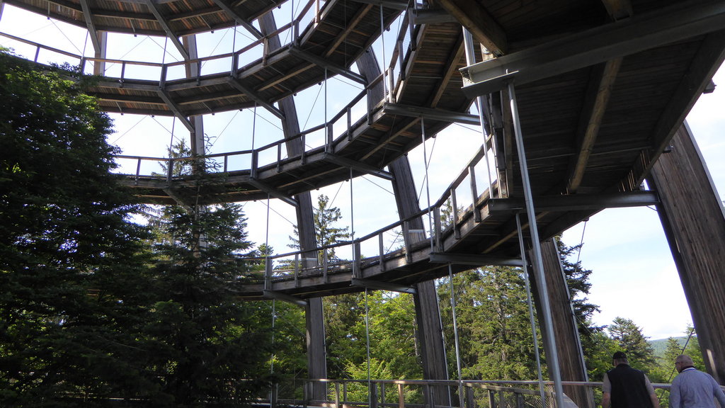 Den geplanten Abstecher in die Tschechei zur Talsperre Nýrsko und dem Stausee gaben wir auf. Stattdessen fuhren wir über Bodenmais und Regen zum Nationalparkzentrum Lusen bei Neuschönau. Dort besuchten einige von uns den Baumwipfelpad.