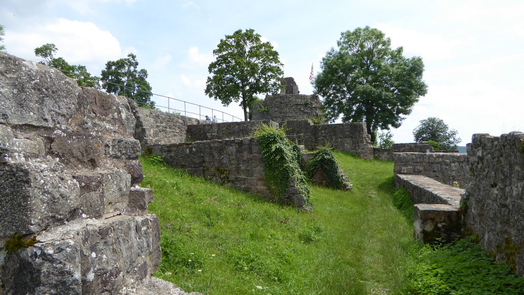 Zuerst die Ruine Botenlauben bei Reiterswiesen. Sie war wegen einer Baustelle mit dem Roller nur schwer zu erreichen. Entstanden um 1180. Bekannt ist der Minnesänger und Kreuzfahrer Otto von Botenlauben. Ausführliches über die Geschichte der Burg ist auf Wikipedia zu lesen.