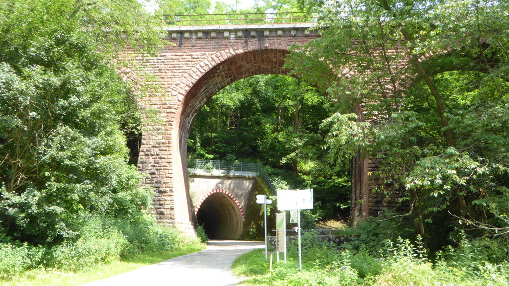 Weiter ging die Fahrt durch Arnshausen zum Eisenbahnviadukt. Dort stellte ich das Fahrzeug ab und es ging zu Fuß den Berg hoch zur Eiringsburg. Hin und zurück ca. 1,5 km mit 40 Höhenmetern.