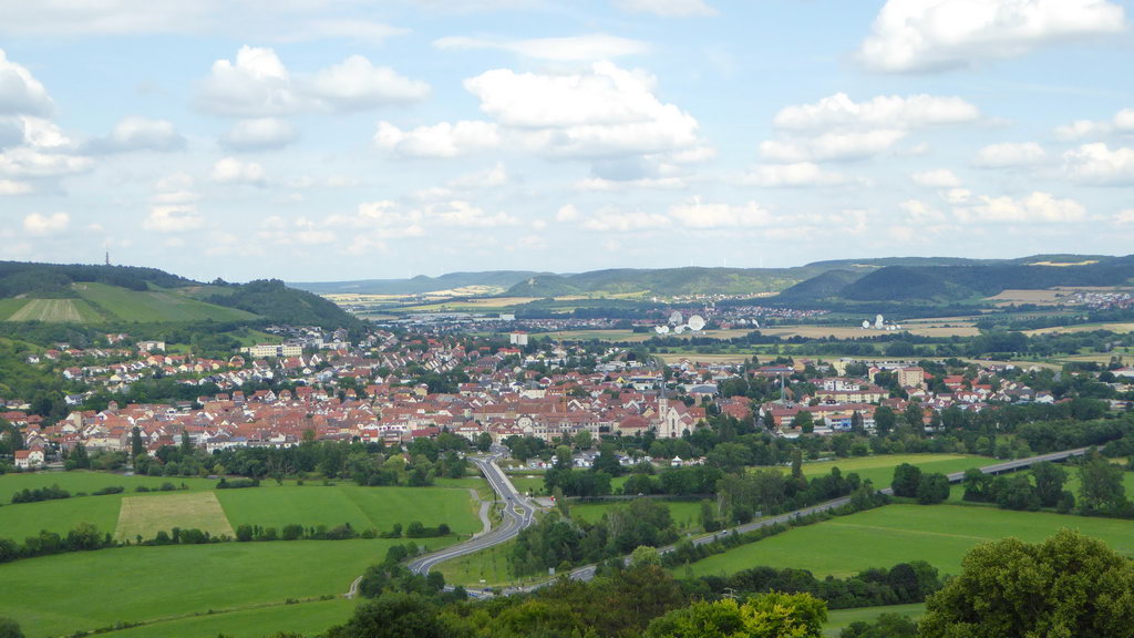 Über Wirmsthal, Euerdorf nach Trimberg. Dort oberhalb des Ortes, auf dem Pfaffenberg, sind gleich 2 Orte zu besichtigen. Die Leuchtenburg und die Trimburg.