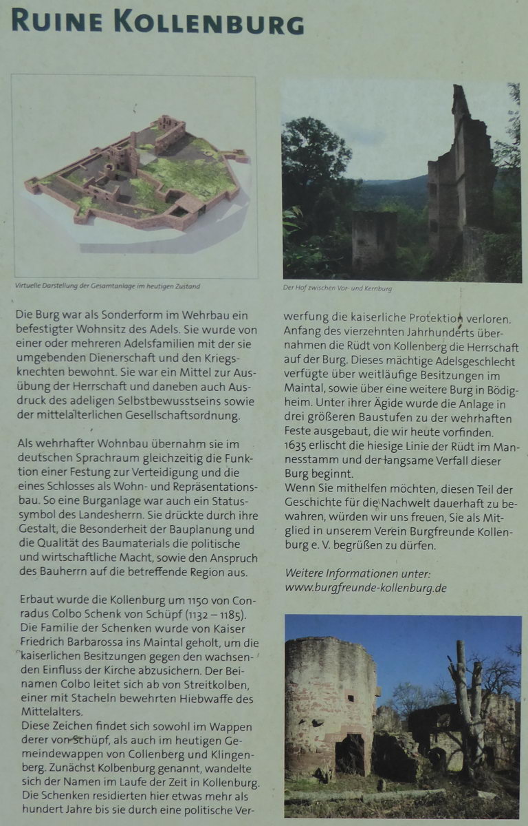 Weiter ging es in Richtung Collenberg. Kurz zuvor rechts oben die Ruine der Kollenburg. Erbaut 1132 bis 1185. Im 17. Jahrhundert begann der langsame Verfall der Burg.