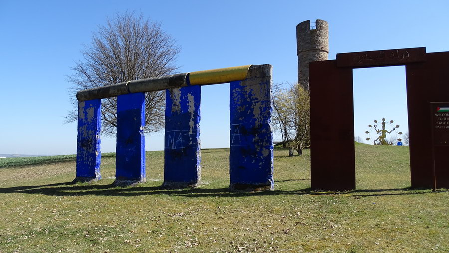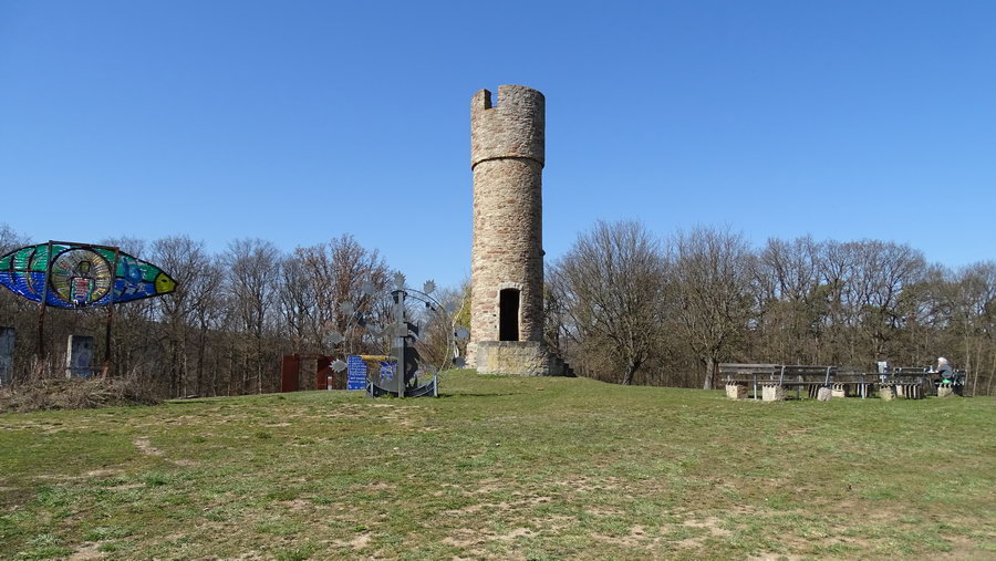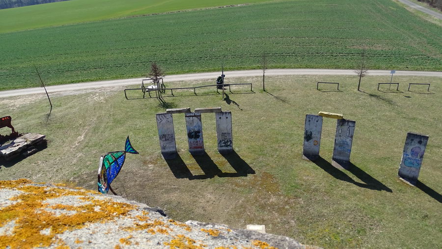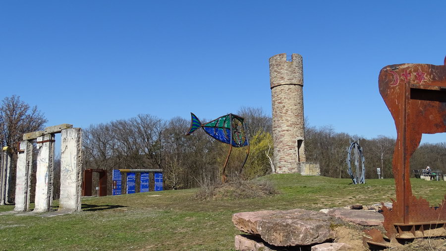 Über Oberthulba, Burkardroth und Steinach nach Niederlauer. Dort besuchte ich den Skulturenpark "Deutsche Einheit – Denkmal für Einheit und Freiheit" am sogenannten "Dicken Turm". Es handelt sich um einen Wartturm, von denen es zahlreiche zwischen Rhön und Grabfeld gibt.