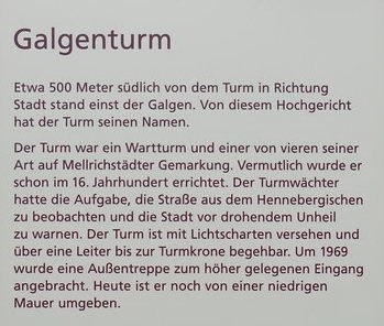 Nördlich von Mellrichstadt befindet sich gleich neben der ehemaligen B19 der nächste Wartturm, der "Galgenturm". Leider fehlt die angekündigte Leiter bis zur Turmkrone.