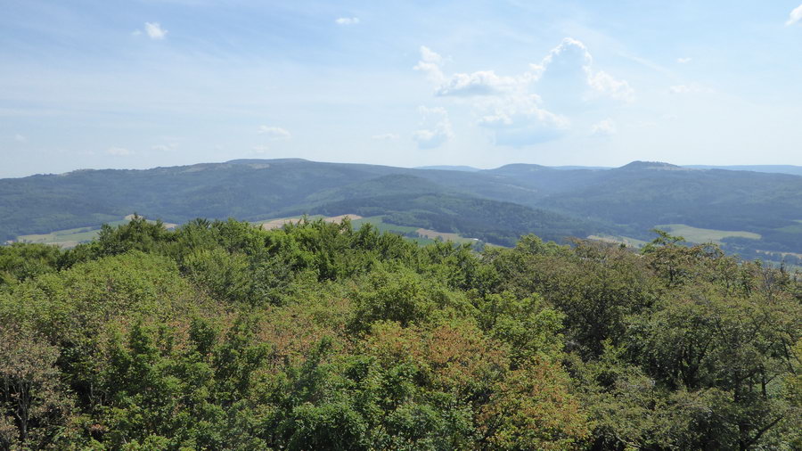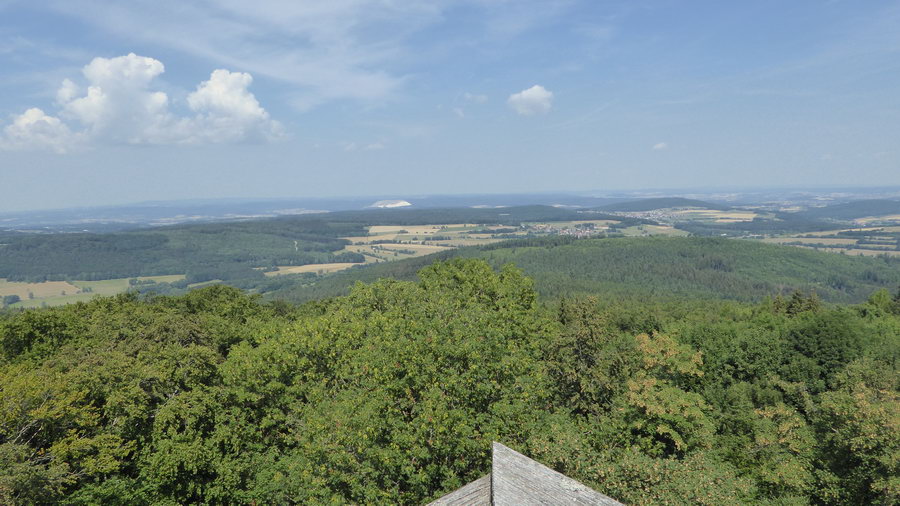 Ist man jedoch erst einmal oben auf der 658 m hohen "Große Haube" und hat die 122 Treppenstufen des Turmes bestiegen, dann hat man eine hervorragende Fernsicht zu Rhön, Türinger Wald, Spessart, Taunus und Vogelsberg.