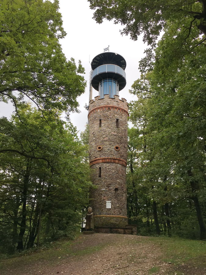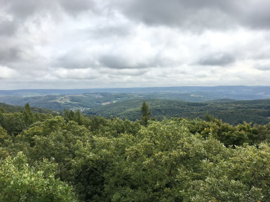 Mittagspause in der Gaststätte am Hahnenkamm. Vom dortigen Ludwigsturm hat man eine unwahrscheinliche Rundumsicht. Trotz des diesigen Wetters an diesem Tag war die Skyline von Frankfurt zu sehen.