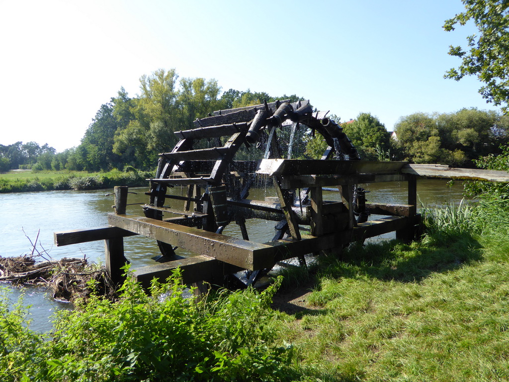 Eine Gastwirtschaft suchend ging es über Hirschaid, an Forchheim vorbei, über Baiersdorf zu unserem Ziel nach Möhrendorf. Dort Mittagessen im Hof einer Gaststätte. Anschließen zu einem Wasserschöpfrad. Diese Technik- und Kulturdenkmale sind einmalig in Mitteleuropa.