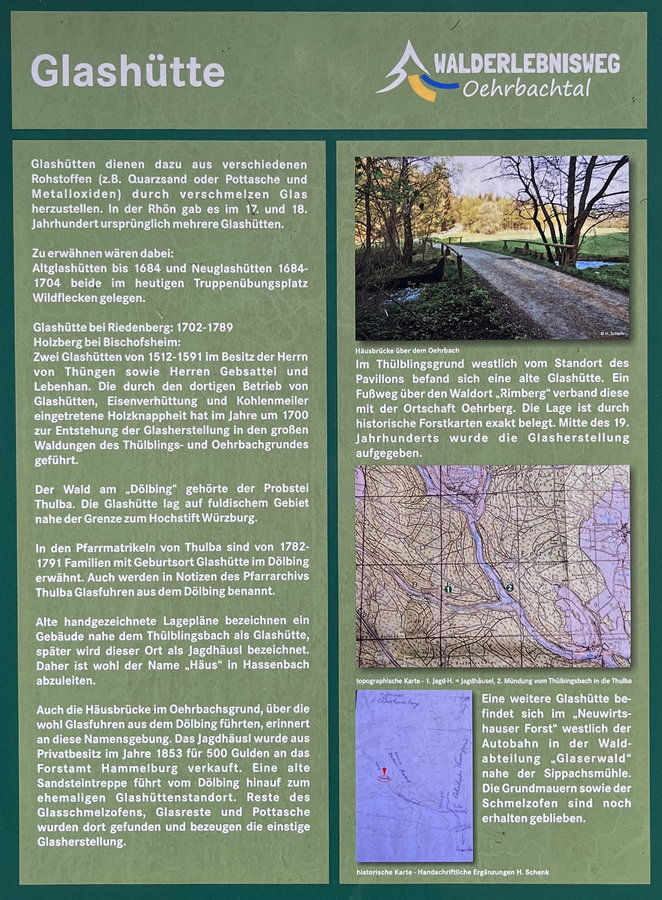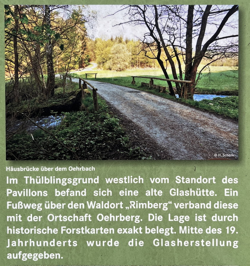 Am Pavillon wird die Geschichte der in der Nähe befindlichen Glashütte erklärt. Diese ist dort in alten Karten mit "Jagdhäusel" bezeichnet.