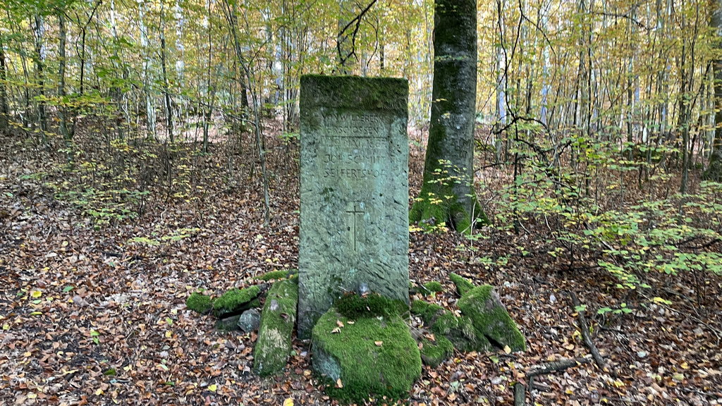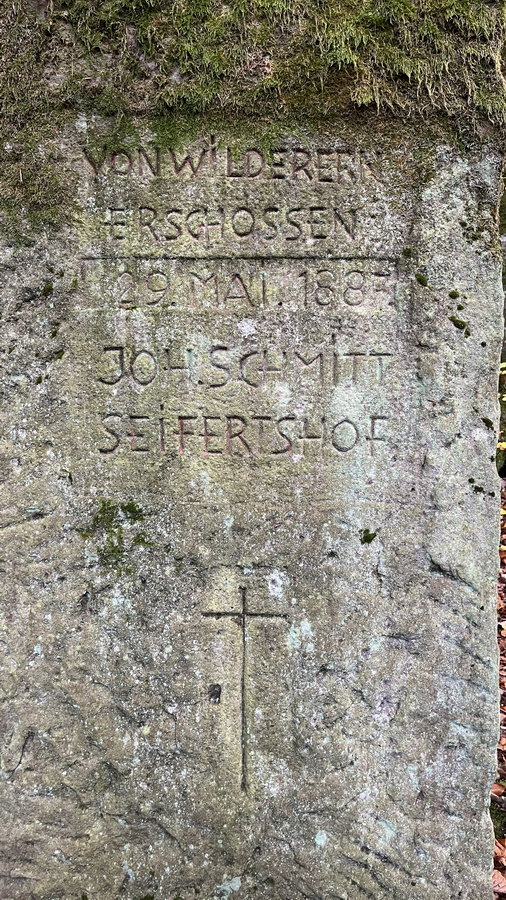 Johann Burkard Schmitt war Waldaufseher aus dem Seifertshofe. Er wurde hier am Pfingssonntag 1887 von einem Wilderer ermordet.