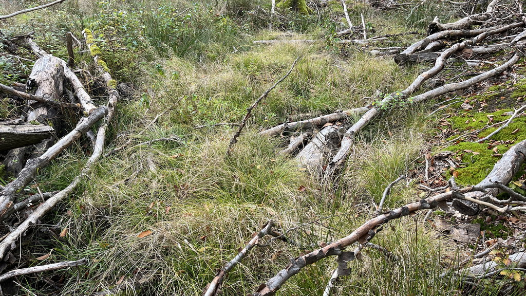 Hier neben der Straße ist eine Quelle eingezeichnet. Aber der direkte Ursprung ist in diesem "Verhau" und Durcheinander nicht feststellbar.