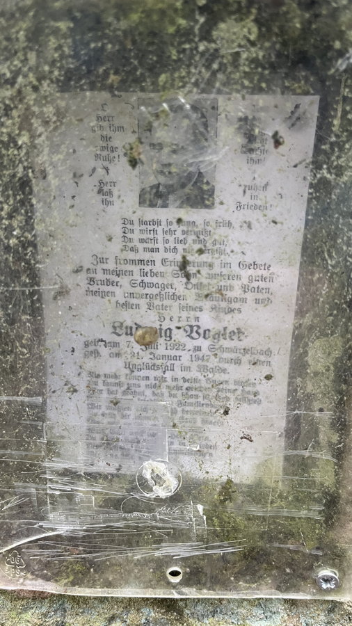 Ludwig Vogler kam hier kurz nach seiner Heimkehr aus Rußland vom Kriege beim Holzfällen ums Leben.