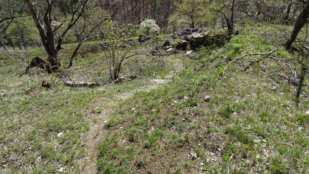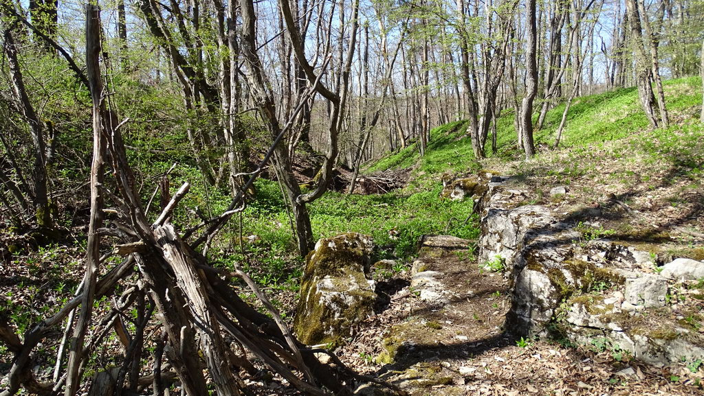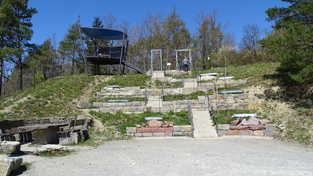 Beim studieren der Karten sah ich eine Ruine auf dem Weg nach Güntersleben. In der Nähe, am Rande eines Steinbruches gab es einen Parkplatz. Vor dort sind es knapp 800 m zum Burgstall Etzburg. Über die Burg ist wenig bekannt. Sie wurde wohl um 1270 gebaut und ca. 40 Jahre später bereits wieder zerstört. Man sieht nur noch sehr wenige Mauerreste.