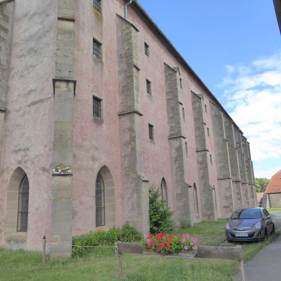 Weiter zum Gut Mariaburghausen. Das ehemalige Zisterzienserinnenkloster ist seit dem 16. Jahrhundert nicht mehr von Nonnen bewohnt. Heute ist es ein landwirtschaftliches Gut der Universität Würzburg. Die kath. Kirch St. Johannes der Täufer kann besichtigt werden. Leider war jedoch Alexandra Böhm nicht zu Hause.
