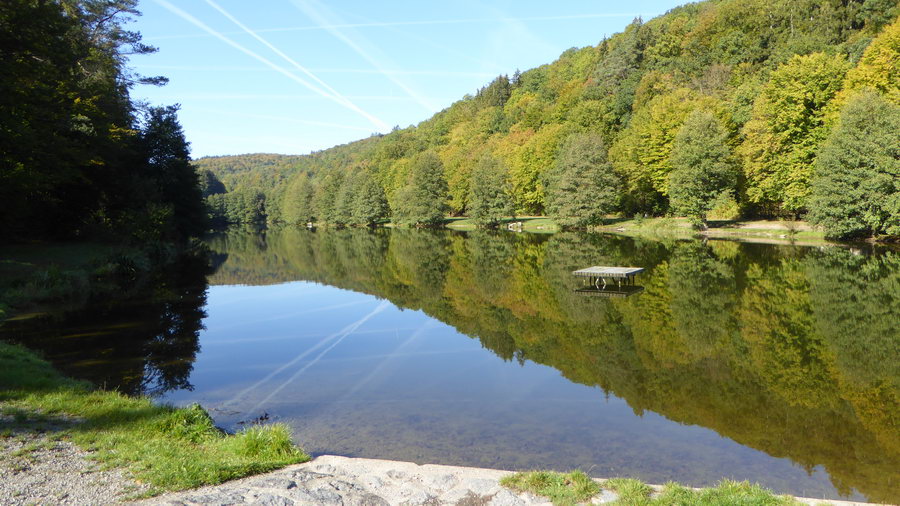An Gemünden vorbei durch das Tal des Sindersbaches mit einem kurzen Stopp am Sindersbachsee und am Untersee des Pumpspeicherkraftwerkes der Donau-Wasserkraft AG. Dort wird Bahnstrom für den Spitzenbedarf erzeugt.