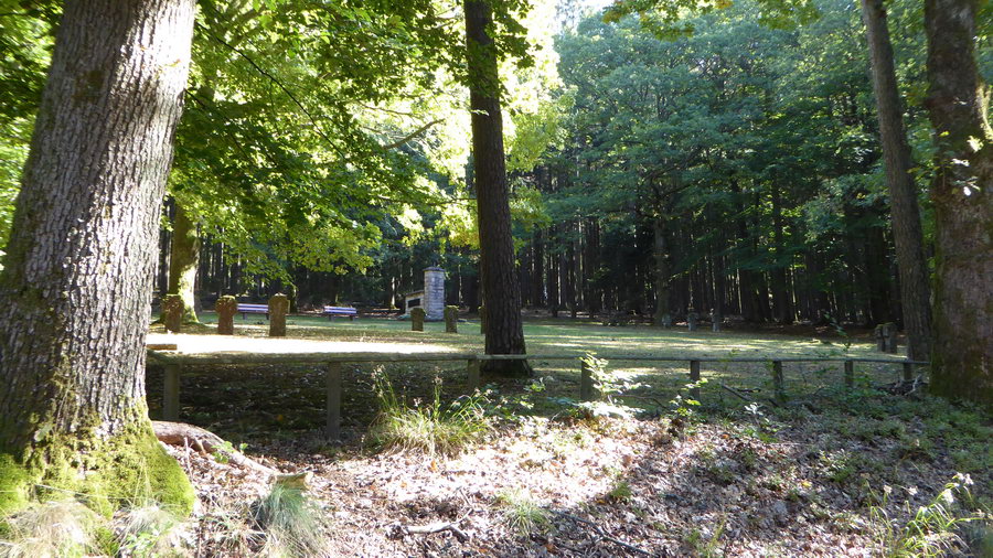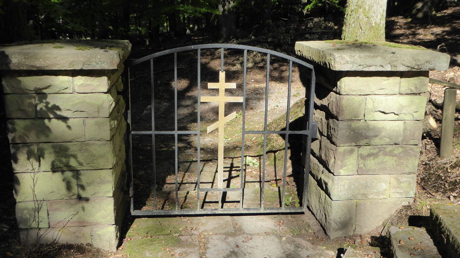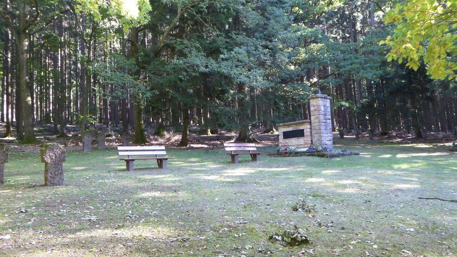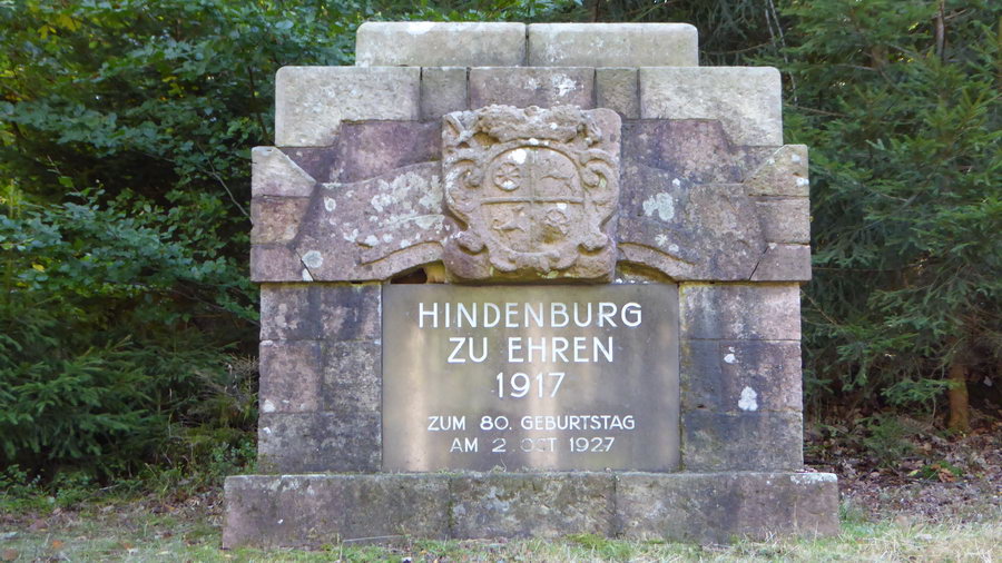 Vorbei am Hindenburgdenkmal zum Kriegsgefangenenfriedhof. Im Kriegsgefangenenlager in der Nähe an der Wegscheide waren zum Teil mehr als 20 000 Kriegsgefangene aus mindestens 8 Nationen untergebracht. 1430 gestorbene sowjetische Soldaten liegen auf dem Friedhof begraben.