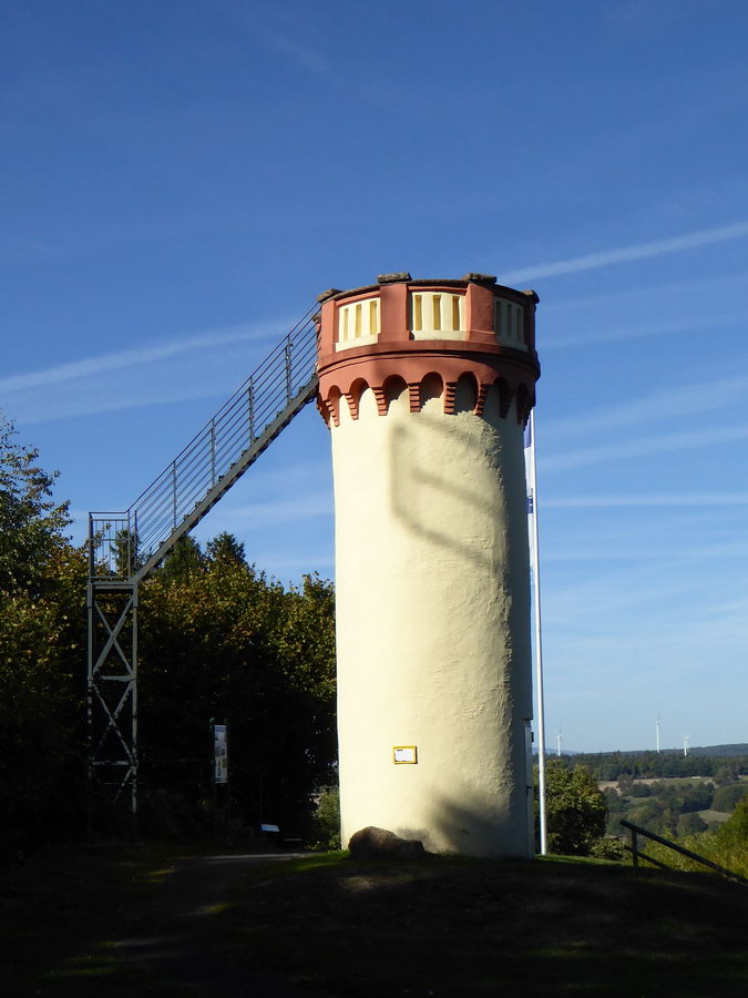 Hinauf zum Molkenberg mit seinem Wartturm. Hier hat man einen der wenigen Fernblicke im Spessart.
