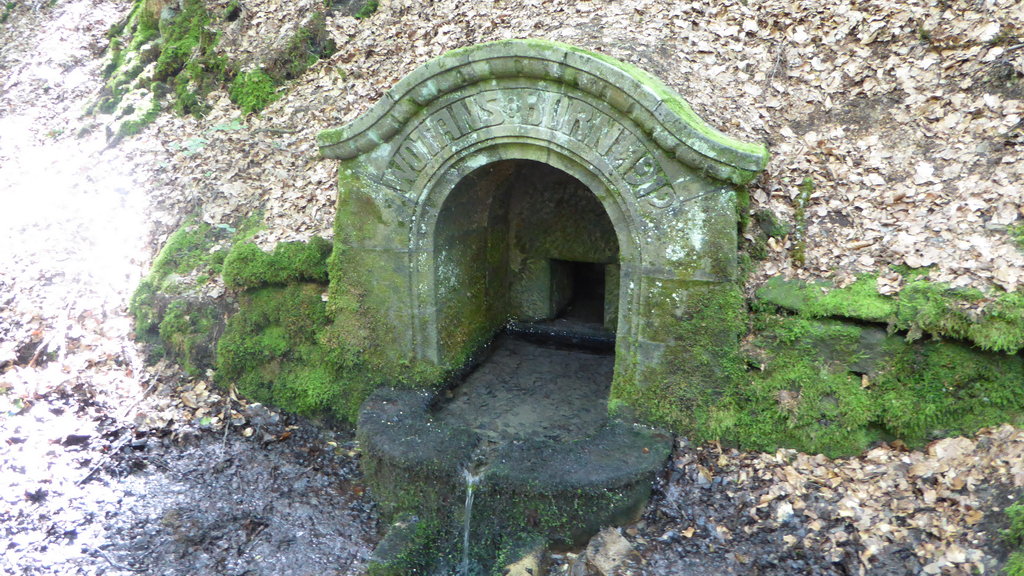 Die Fahrt ging über Grafenrheinfeld, Grettstadt, Hundelshausen in den Steigerwald. Bei einer früheren Pause sah ich an einem Parkplatz den Hinweis "Wotansborn". Diesen besuchte ich diesmal. 280 m Fußweg in den Wald und die 1912 gefaßte Quelle war erreicht.