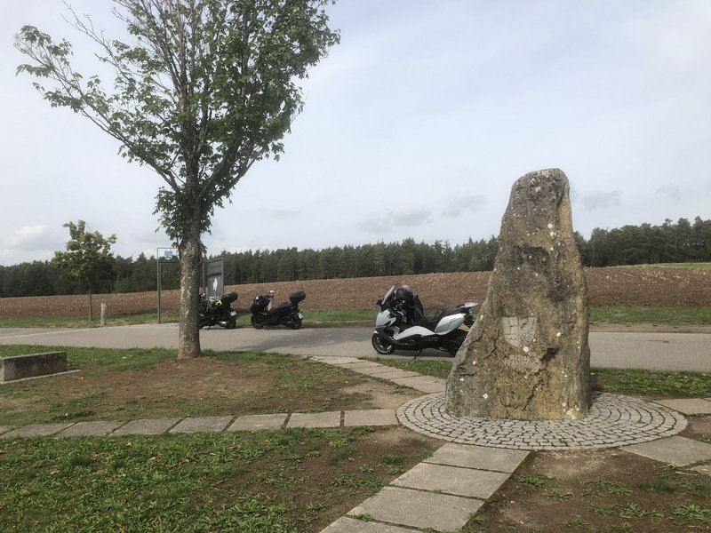 Danach ging es durch den Steigerwald, Untersteinbach und Burgwindheim zum Dreifrankenstein bei Heuchelheim. Hier treffen sich seit der Gebietsreform in den 70er Jahren Ober-, Unter- und Mittelfranken.![]()