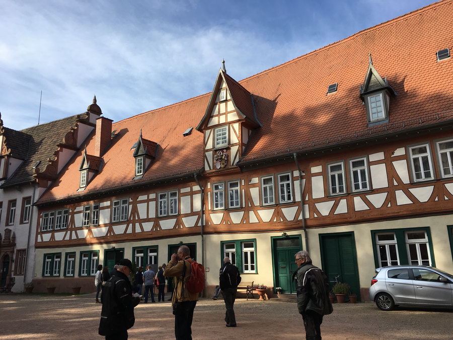 Mittagspause in einer Gaststätte neben Marktplatz und Schloss.Danach ein kurzer Spaziergang über den Markplatz und durch die Schlossanlagen. Zeit für Besichtigungen oder gar für den Besuch einer Sammlung oder eines Museums blieb nciht. Über den "Lustgarten Erbach" ging es wieder zu den Rollern zurück.