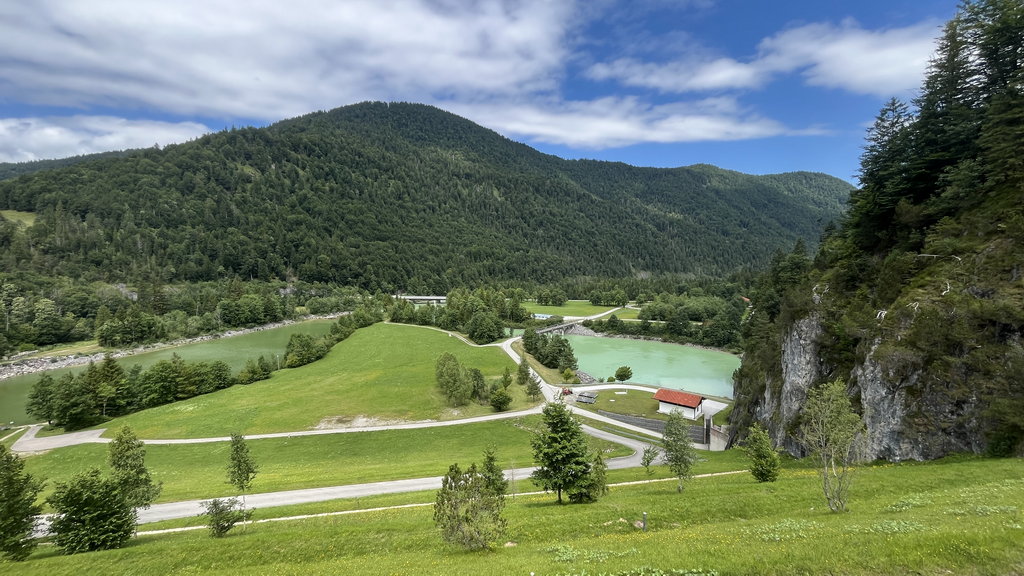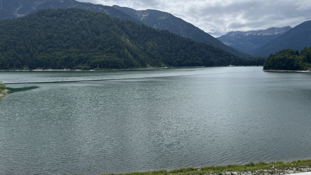 Ab Wallgau über die Mautstrasse durch das Isartal nach Fall. Kurze Pause und weiter über den Sylvensteinspeicher in Richtung Kreuth.