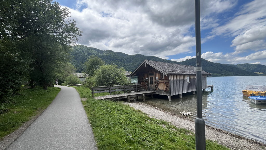 Tankstop und Pause in Bad Wiessee am Tegernsee. Über Hausham an den Schliersee mit ebenfalls einer kurzen Pause.