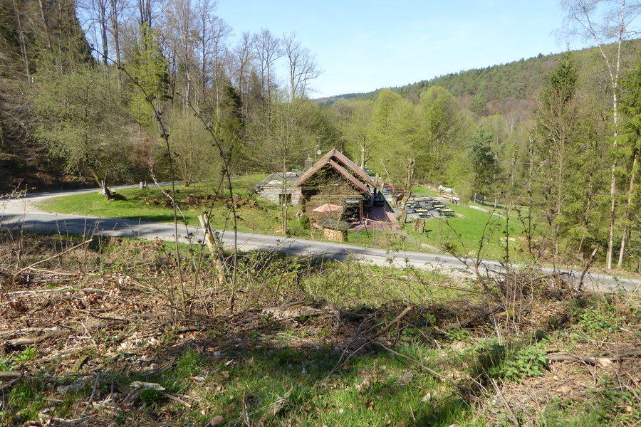 Von hier über Partenstein und Wiesthal in den Spessart. Im Aubachtal liegt die "Fischerhütte".