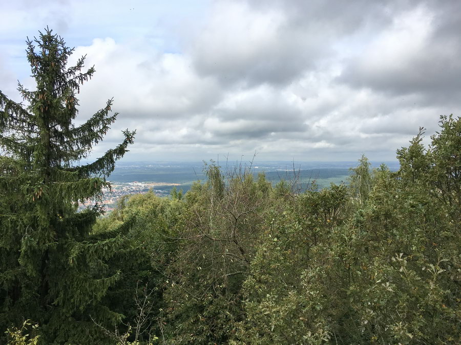 Mittagspause in der Gaststätte am Hahnenkamm. Vom dortigen Ludwigsturm hat man eine unwahrscheinliche Rundumsicht. Trotz des diesigen Wetters an diesem Tag war die Skyline von Frankfurt zu sehen.