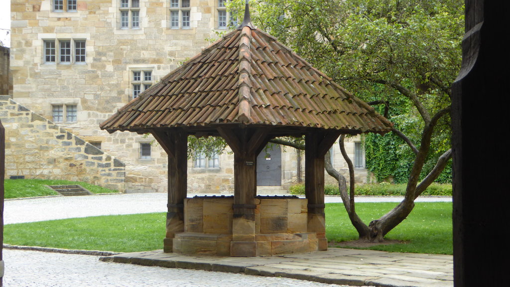 Um 1070 wurde auf einer ehemaligen Burgstelle die Benediktiner-Abtei Banz gegründet und blieb bis zur Säkularisation Kloster. Anschließend war die Anlage im Besitz des Kurfürstentum Bayern, des Herzog Wilhelm von Bayern, die Gemeinschaft von den heiligen Engeln, ehe es 1978 die CSU-nahe Hans-Seitel-Stiftung übernahm. Bei früheren Besuchen von Bad Staffelstein hatte ich bereits Führungen im Gebäude und der Petrefaktensammlung, so dass ich es diesmal bei einem kurzen Rundgang beließ.