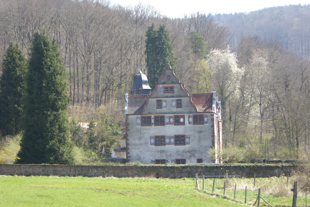 Vom Wasserschloss Eschau, zu dem ich ebenfalls fuhr, sah man nicht viel. Privaatbesitz und der Zugang durch eine entsprechende Kette versperrt.