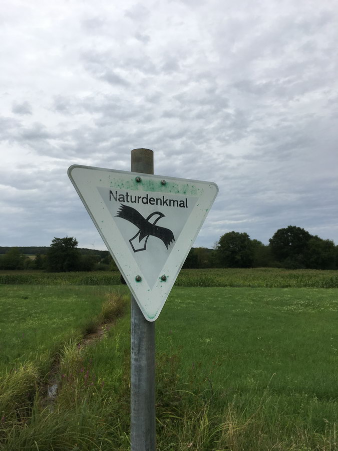 Ich erinnerte mich in Landkarten eine Mineralquelle bei Untereuerheim gesehen zu haben. Also Anfahrt über Sennfeld und Weyer. Ab Untereuerheim auf einem Feldweg (Radweg) in Richtung Horhausen. Etwa auf halber Strecke erkennt man links den Quellbach.