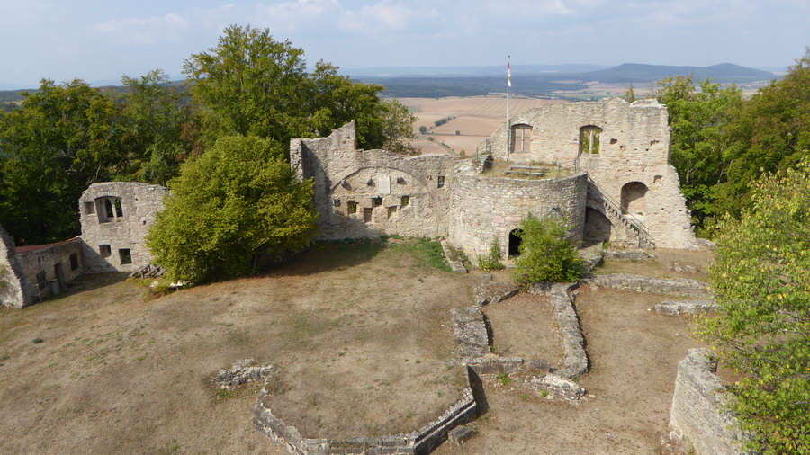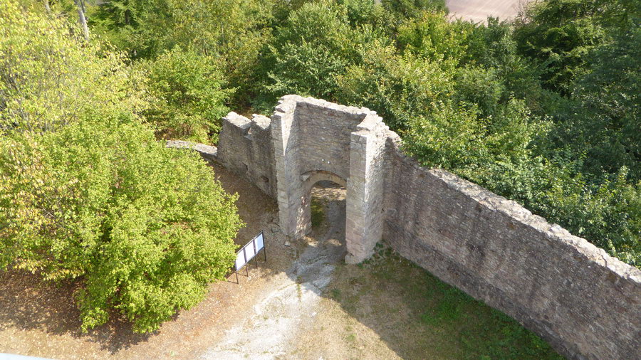 Weiter ging es zum daneben gelegenen Ort Henneberg. Dort besuchte ich die gleichnamige Burgruine. Zahlreiche Mauerreste sind noch erhalten und der Turm kann über eine Außentreppe bestiegen werden. Von dort aus hat man eine gute Sicht in das "Henneberger Land" und auf die ehemalige Grenzabfertigungsstelle.