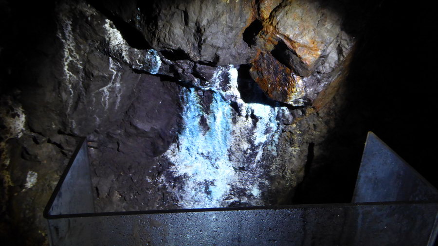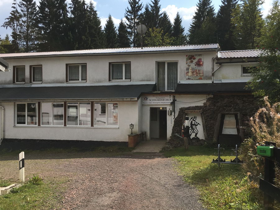 Nachdem ich wußte, daß das "Stutenhaus" am Mittwoch zu war, fuhr ich zur "Schwarzen Crux". Mittagspause im dortigen Waldgasthaus. Anschließend schloss ich mich einer Führung durch das Bergwerk an.In der "schwarzen Crux" wurde bis 1924 schwarzer Magneteisenstein abgebaut und nach der Verhüttung in der Waffenproduktion in Suhl verwendet.