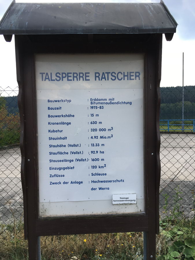 Weiterfahrt zur Talsperre Ratscher. Leider fand ich keinen freien Zugang zum Wasser (4 EUR Eintritt für Tagesgäste) und fuhr daher weiter zur Kaffeepause nach Hildburghausen.
