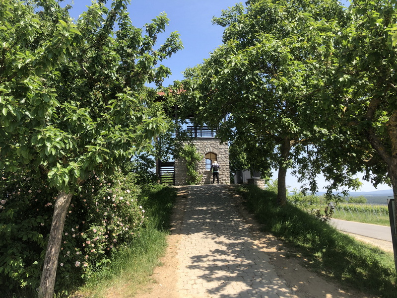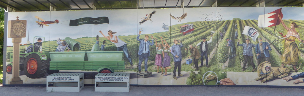 Kurz nach Volkach auf die "Weininsel". An der Hallburg vorbei zum Kreuzberg. Dort ist neben dem Aussichtshügel der Terroir-f Ort Nordheim. Er hat das Motto "Wein-Persönlichkeiten". Von dort aus eine ca. 3 km lange Wanderung am Aussichtsturm von Sommerach vorbei und wieder zurück zum Kreuzberg.
